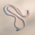 A thin bright line of neon color runs through the clear Czech glass beads. Like a Neon sign, the color illuminates throughout the necklace. Pink necklace has a smooth quartz crystal. These smooth stones provide a calming point of meditation.